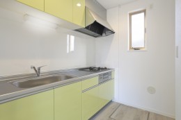 2100㎜サイズのワイドキッチンやお子様と一緒に入浴できる1坪サイズのユニットバスなど、住宅設備もファミリーに向けたゆとりあるものをご選択いただきました。