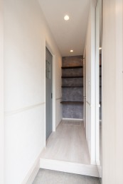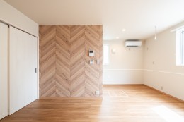 新しく誕生した建物の外観はモノトーンと木質にこだわり、外壁はもちろん、外構の床や軒天のデザインまで細かくご検討いただきました。内装も2パターンのコーディネートで、アクセントクロスや内部建具の色やデザインなどお施主様と営業・設計担当者が膝を交えながら一つ一つ作り上げました。